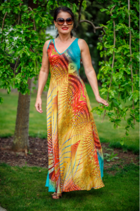 Der große Vorteil von einem persönlich designten Kleid ist die Kombination seiner Lieblingsfarben und Stoffe.