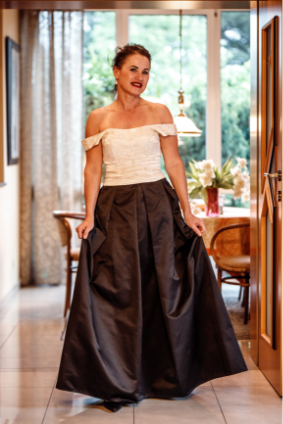 Designerin Brigitta lebt eine schlichte Philosophie. Jede Frau hat eine Geschichte und besondere Merkmale und sollte diese mit Stolz präsentieren können. Es gilt die Schönheit in jedem Lebensabschnitt zu entdecken und auszudrücken. Kleider werden so zum lebenslangen Ausdruck der persönlichen Individualität.